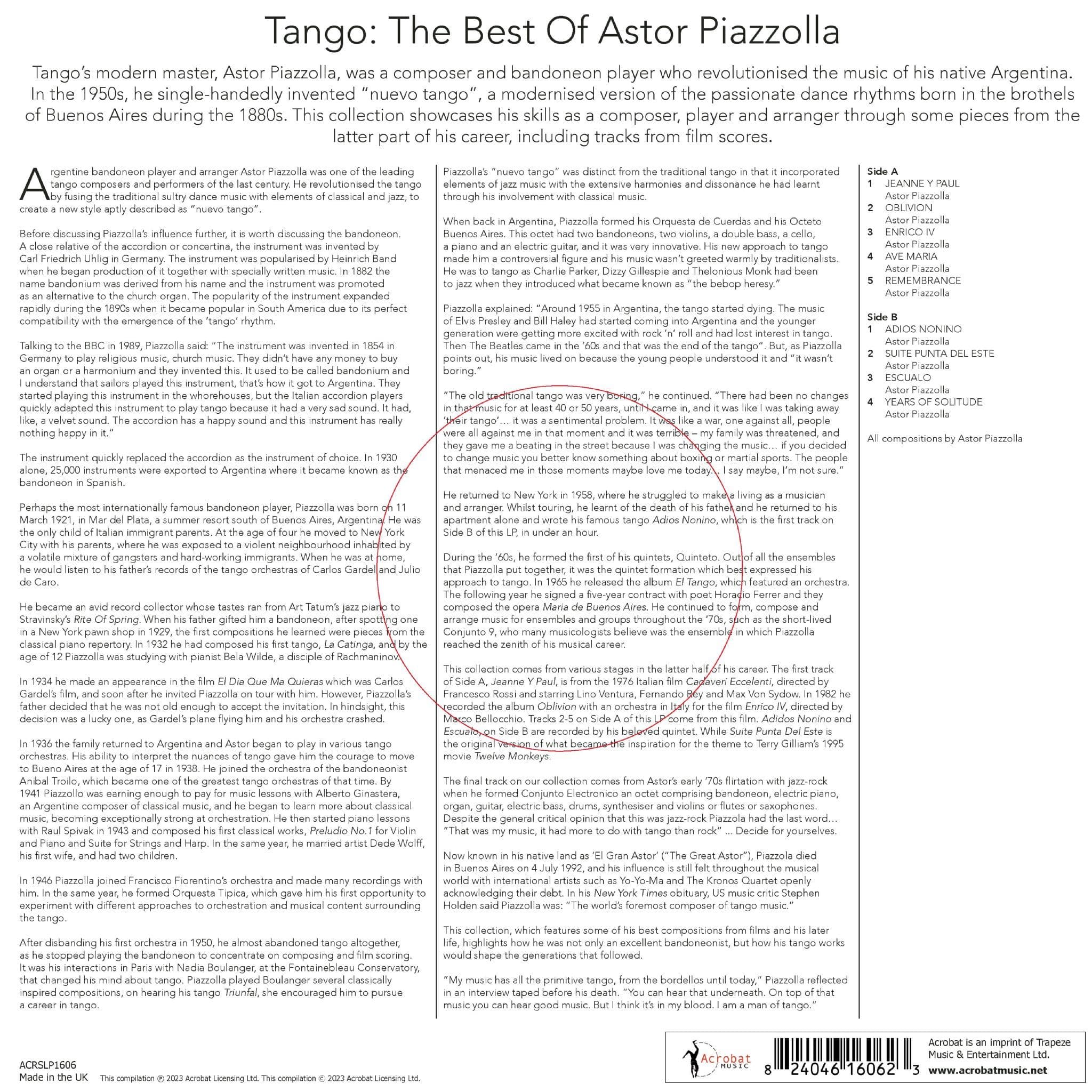 Astor Piazzolla Tango: The Best of Astor Piazolla Vinilo