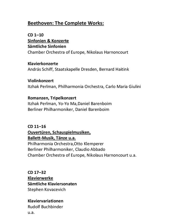 Para ver detalle de contenido CD , presionar el siguiente link https://www.discogs.com/Ludwig-van-Beethoven-The-Complete-Works/release/15817761
