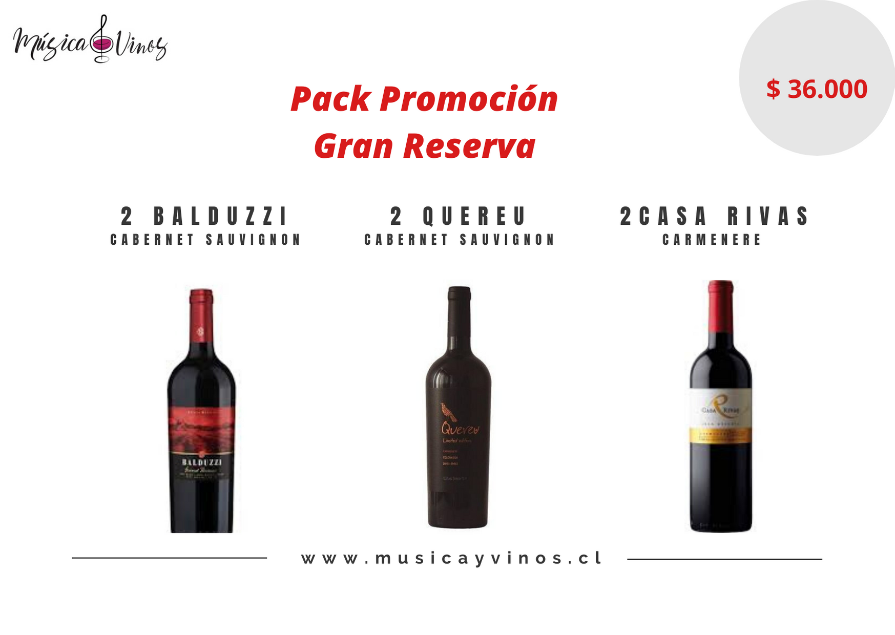 Categorías: Cabernet Sauvignon, Cabernet Sauvignon, Carmenere, Carmenere, Gran reserva, Pack promocion, Tintos, Vinos