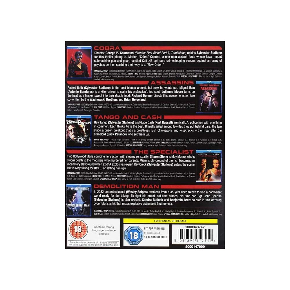 Set de cinco BR que contiene un quinteto de películas protagonizadas por Sylvester Stallone.